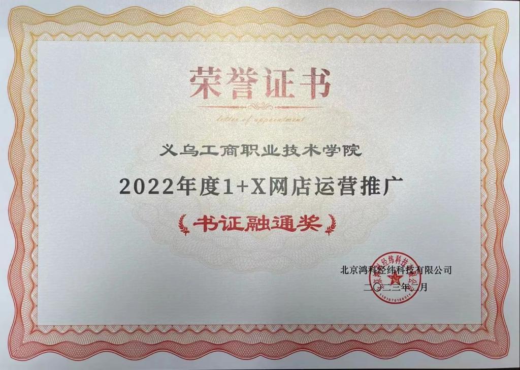 电子商务专业“网店运营推广(中级)”1+X证书试点于2020年3月获国家试点立项,经过2年多的建设,已经与《网店运营》课程融合,实现课程融通,并喜获2022年度1+X网店运营推广书证融通奖。