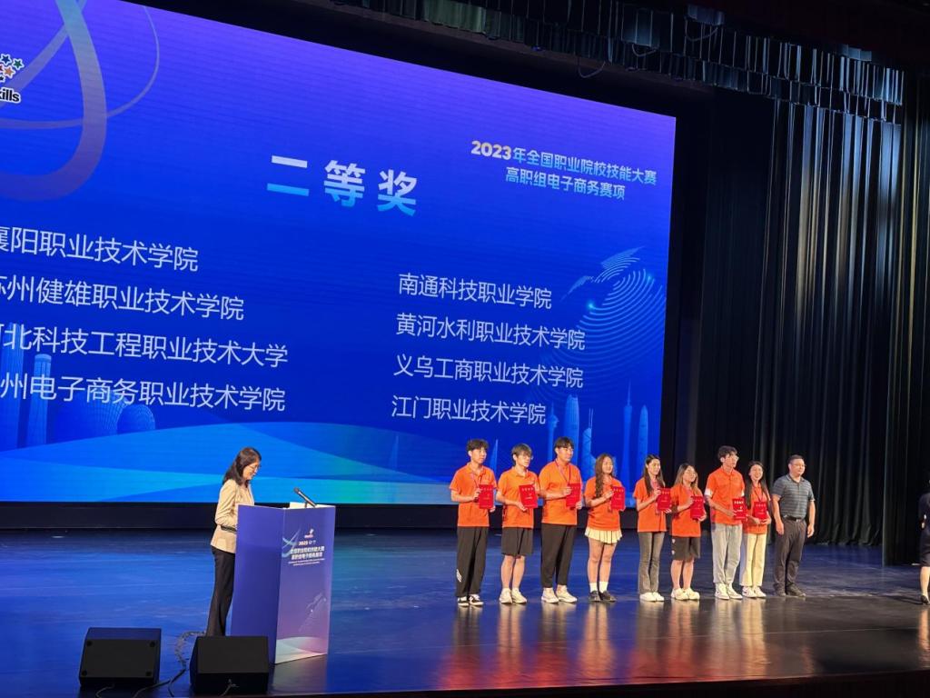 7月26日,由广东科学技术职业公司承办的2023年全国职业院校技能大赛高职组电子商务赛项技能竞赛于珠海顺利落下帷幕。该赛项共有来自全国各省共74支队伍参赛。经过两日的激烈角逐,由朱景伟、颜颖老师指导,楼萧怡、郑奕扬、唐天龙、朱俊韬4名同学组成的代表队喜获全国二等奖,实现了电子商务技能竞赛首次进入国赛并获得国赛二等奖的突破。