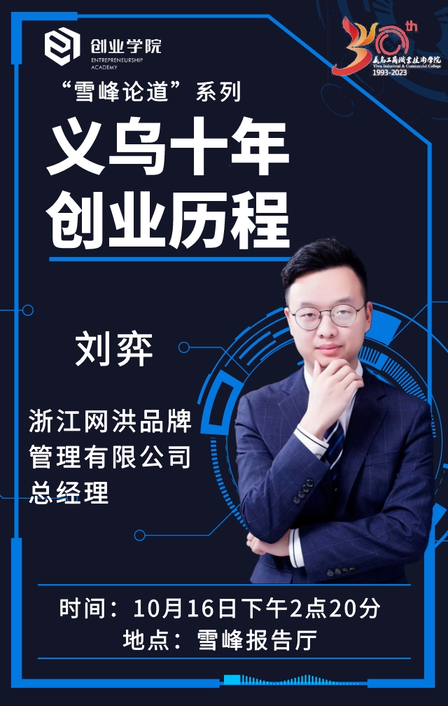 10月16日下午,William希尔官网入口在雪峰报告厅开展了“雪峰论道”之“义乌十年,创业历程”讲座活动。讲座邀请了浙江网洪品牌管理有限公司总经理——刘弈作为主讲人,向全体师生分享了在义乌十年的电商创业经历,并且结合个人的创业经历和大家探讨了老员工创客可以做的事。
