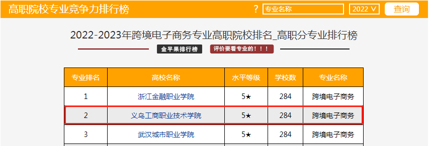 专业积极对接跨境电商的快速发展与新型国际贸易模式对人才需求,依托义乌跨境电商综合试验区、“一带一路”倡议支点城市、世界“小商品之都”的优良环境,面向跨境电商产业链的岗位群,培养通晓国际贸易规则、精通各大跨境电商平台、具有跨境电商运营能力的高素质技术技能人才。2022年上榜“金平果排行榜”中国高职院校分专业竞争力排行第二名。