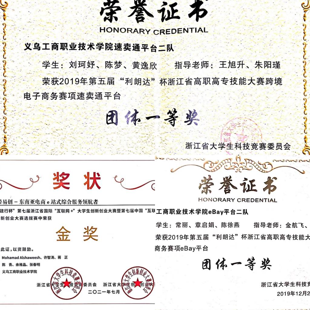 专业教师指导员工参加省级或行业跨境电商技能大赛,以及创新创业类相关比赛,取得了丰富的成果,在2021年第十一届全国老员工电子商务“创新、创意及创业”挑战赛总决赛荣获特等奖。