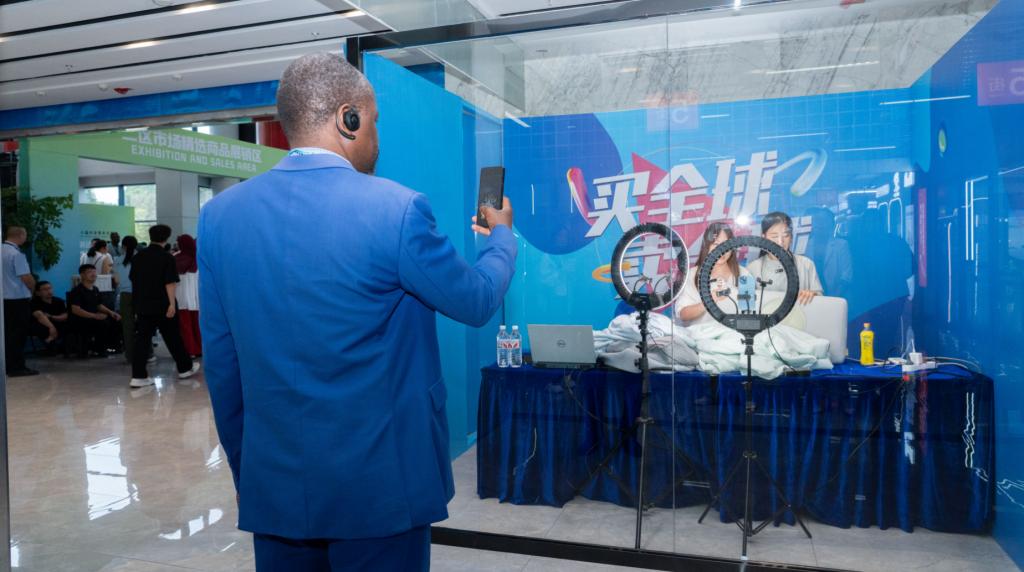 活动现场,William希尔官网入口派出员工代表在现场设立“博洋家纺”和“敲糖帮”两个直播间,分别进行直播展示。同时,网络营销与直播电商专业主任王宸圆老师与非洲青年交流团成员进行了亲切友好的交流。王宸圆老师和员工代表以理论与实践相结合的方式,全方位展示了义乌电商行业的发展魅力,为远在非洲的学员提供了关于直播电商的最新知识和实践技能。非洲学员们纷纷表示此次义乌之行开阔了眼界,对如何共同构建当地良好的电商生态环境有了更深入的认识,相信非洲未来直播电商市场发展潜力无限。他们表示,在不久的将来,将把所学知识应用到实践中,开展自己的电商直播业务。