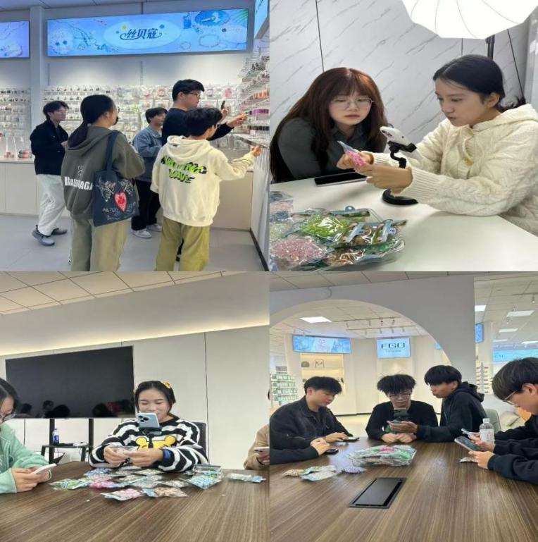 企业“请进来”,推动校、企异质性资源的互补。针对陈明饰品和云仓直播基地的产品,员工们根据对标账号的爆款产品开始DIY手链、手机链、发夹等相关产品,并利用企业的摄影棚进行产品图片和视频的拍摄。企业导师根据产品特色指导员工进行小红书和直播平台的文案创作并发布,并指导员工将DIY饰品进行现场直播。当天不少员工收到购买订单,企业一件代发,产生了不错的反响。同时,员工也了解行业动向和市场需求。