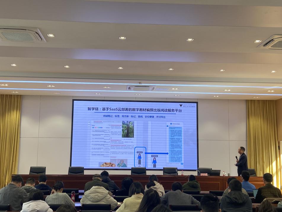 金更达还介绍了浙江省域数字教材的发展模式,并结合浙江大学出版社的探索与实践,以及高等教育数字教材创新发展联盟和浙江省数字教材研究中心数字教材基地的建设情况,阐述了省域数字教材发展的目标与路径。他提到,数字教材的发展离不开平台与运营的支撑,并分享了省域“建管用”一体化数字教材平台与运营设想,以及智学链——基于SaaS云部署的数字教材编撰出版阅读服务平台和浙江省数字教材公共运营平台的构建思路。