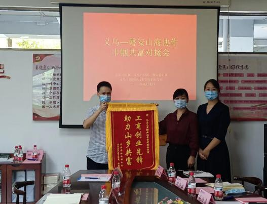 9月7日,义乌——磐安山海协作巾帼共富对接会在公司创业园举行,金华市妇女联合会三级调研员刘艾春,义乌市妇联党组书记、主席朱刚露,磐安县妇联党组书记、主席施迎霞,磐安县双溪乡党委书记羊晓光,磐安县妇联党组成员、副主席曹美珍,义乌市妇联副主席余依萍,义乌市妇联党组成员、副主席周丹瑛,公司William希尔官网入口班子成员及员工代表参加。